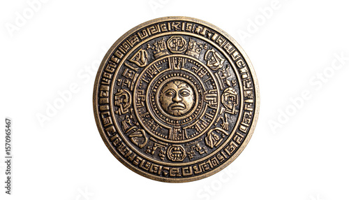 ancient, bronze, circular, design, disc, metal, symbol, symbolism, culture, history, engraving, texture, isolated, detailed, decorative, round, artifact, ornament, pattern, art, engraved, historical, archaeologic, ancient civilization, metalwork, gold, colours, dark background, light, contrast, background, black, photo, image, illustration, graphic, vector, copy space, unique, mediaeval, pre-columbian, aztec, collection, display