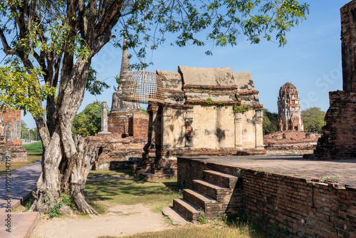 Ancient Buddhist Temple Ruins and Buddha Statues in Ayutthaya, Thailand