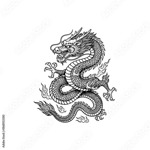 Ancient chinese dragon engraving.