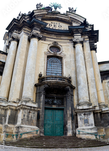 Ancient monument - facade of medieval church in Lviv Ukraine
