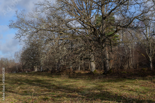 tree, nature, sky, landscape, grass, green, blue, tree, field, countryside, autumn, old, leaf, forest, meadow, oak, cloud, outdoors, wood, ancient, oak, nature reserve, environment