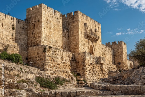 citadel, wall, architecture, stone, fortress, old, historic, building, exterior, structure, travel, tour tourism, vacation, heritage, landmark, sky, blue, sunny, day, light, shadow, texture, rugged, ancient, mediaeval, defensive, tower, battlement, doorway, step, level, tier, landscape, outdoors, scenery, nature, rock, terrain, journey, past, culture, beauty, peace, historical, exploration, discovery, detail, perspective