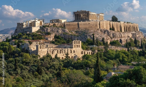 acropolis, parthenon, athens, greece, temple, ancient, architecture, landmark, historical, historical building, hill, rock, stone, ruin, column, structure, heritage, culture, tour tourism, travel, sky, cloud, landscape, city landscape, tree, green, foliage, building, classic, elevation, destination, europa, history, archaeologic, site, antiquity, civilisation, greek, art, perspective, outdoors, environment, sunlight, summer, nature, view, serene, impressive, beauty