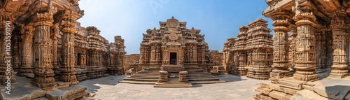 temple, architecture, stone, carving, ancient, historical, heritage, culture, design, spirituality, religion, historical building, landscape, ruin, artistry, craftsmanship, symmetry, pillar, history, tour tourism, site, worship, sacred, tradition, beauty, structure, environment, sky, light, shadow, detail, preservation, exploration, travel, meditation, calmness, india, masonry, scenery, pilgrimage, aesthetic, significance