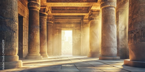 Ancient Temple Interior with Sunlight Streaming Through Windows