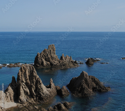 sea, beach, coast, water, landscape, ocean, rock, nature, sky, summer, rock, cliff, blue, travel, coastline, panorama, island, seascape, view, shore, bay, spain, mediterranean, stone, black sea, cape, almería