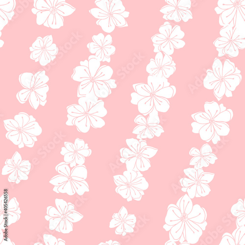 Anemone or windflower poppies flowers background. Floral vector seamless pattern with hand drawn elements in pastel colores.