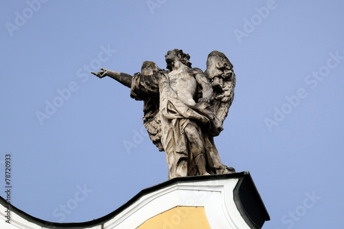 Angel on facade of Barmherzigenkirche in Graz, Austria