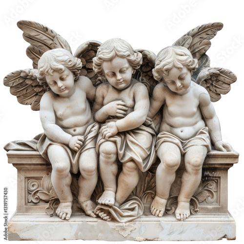 Angelic Cherubs Sculpture On White or transparent Background.