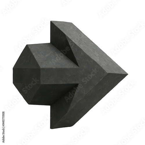 arrow, sculpture, pointer, indicator, direction, geometric, faceted, angular, sharp, three, dimensional, form, object, solid, chunky, heavy, robust, textured, rough, gritty, grainy, stone, concrete, material, surface, matte, dark, grey, charcoal, slate, shade, sombre, right, forward, move, progress, navigate, concept, symbol, graphic, element, design, abstract