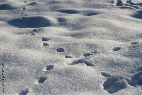 Animal steps in fresh snow background