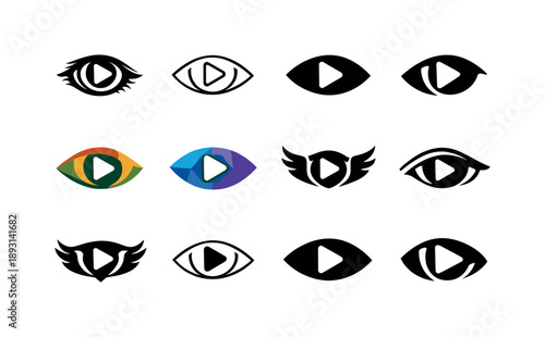 animal, video, icon, video, icon, set, logotype, eye, play, symbol, harmonious, variation, same, emblematic