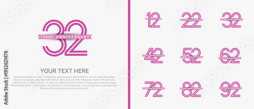 12, 22, 32, 42, 52, 62, 72, 82, 92, ribbon, pink, anniversary, background, birthday, booklet, card, celebrate, celebration, certificate, congratulation, design, greeting, illustration, invitation, leaflet, logotype, number, premium, set, symbol, template, vector, web, year, year, icon