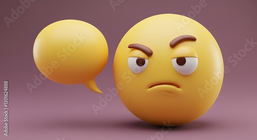 Annoyed emoji with speech bubble conveying frustration or disagreement concept