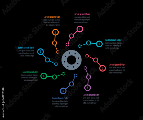 annual report, internet, education, business, magazine information template. eight steps infographic template. rotating circles informational template. wheel infographic template