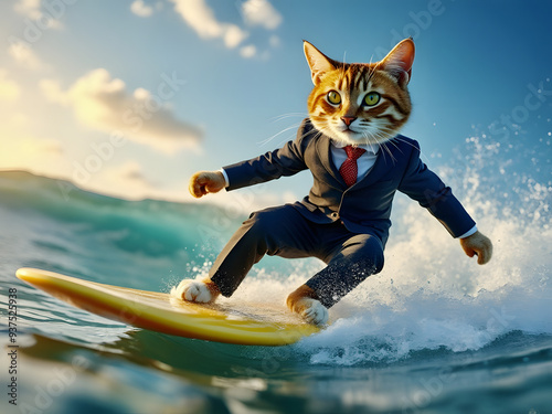 Anthropomorphic Cat Best surfer on the waves