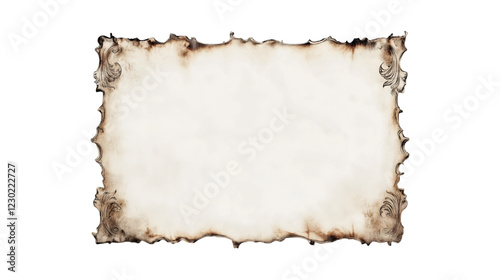 Antique Burned Paper Frame Ornate Design Blank Space, isolated on transparent background
