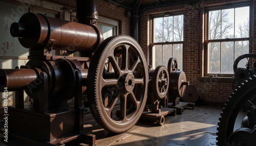 gear, machinery, vintage, factory, industrial, nostalgia, history, motion, warm light, heritage, metal, interior, structure, mechanic, artifact, brown, sunlight, window, shadow, technology, equipment, design, craftsmanship, timeless, calmness, decay, three, no people, age, atmosphere, detail, nostalgic, reflections, old, urban, workspace, silhouette, historical, depth, warm tones, contrast, ambience, scenery, restoration