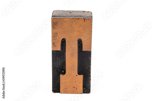 Antique letterpress type Letter T isolated on a white background