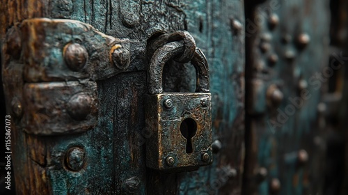 lock, old, metal, door, rust-eaten, vintage, antique, aged, weathered, texture, background, iron, security, keyhole, closeup, detail, wooden, gate, historical, building, architecture, design, object, macro, photo, still life, mystery, secret, past, history, heritage, time, decay, corrosion, industrial, pattern, surface, material, brown, green, blue, dark, shadow, light, contrast, composition, aesthetic, image