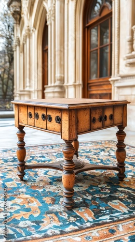 antique, table, wood, furniture, vintage, decorative, ornate, brown, rug, carved, wooden, old, classic, design, home, interior, architectural, detail, surface, aged, texture, pattern, style, object, room, building, exterior, entrance, stone, floor, wooden table, home decor, interior design, wood texture, stone building, entranceway