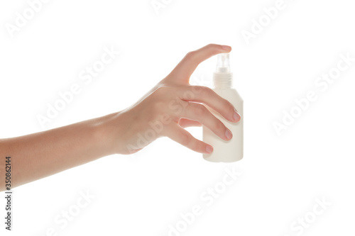 antiseptic spray on hand