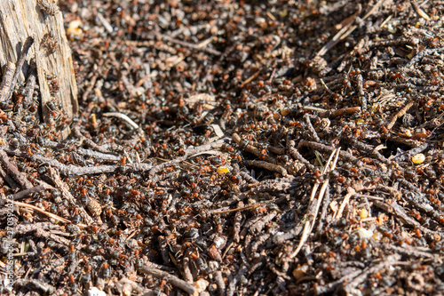 ants on the anthill in the spring