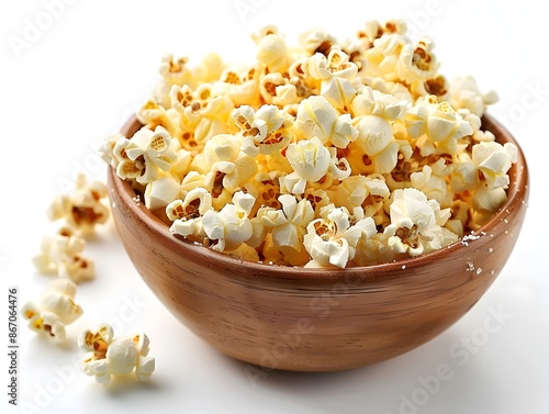 Appetizing Golden Popcorn Kernels in Ceramic Bowl on White Background