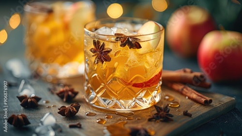 Apple cider cocktail with cinnamon spice, star anise and honey