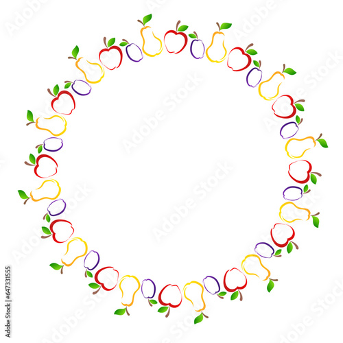 apple, pear and plum art drawn line fruit round frame