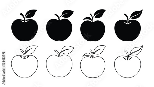 Apple Silhouette and Outline Vector Set - Perfect for Icons, Logos, and Designs