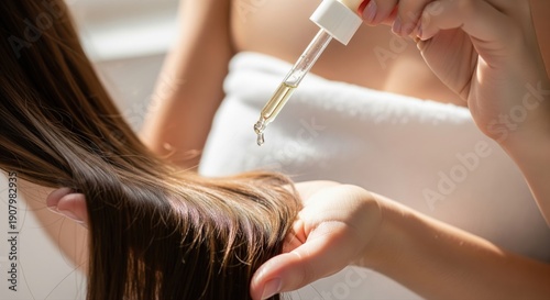 beauty, hair care, hair, oil, serum, care, healthy, woman, dropper, treatment, shiny, long, routine, natural, product, liquid, health, cosmetic, scalp, nourishing, dripped, beautiful, brunette, female, young, wellness, growth, solution, hydratation, moisturise, smooth, gloss, repair, professional, home, elegant, luxury, clean, vibrant, strong, softness, condition, essential, personal, well-groomed, glamour, daily