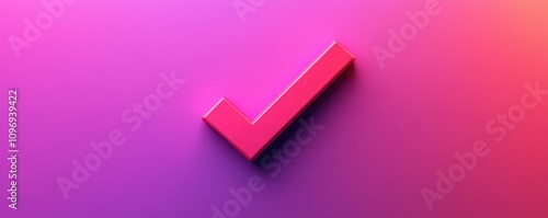 Approval register concept. 3D pink check mark on a vibrant gradient background.