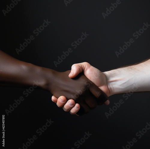 Apretón de manos entre una persona de raza negra y otra de raza blanca