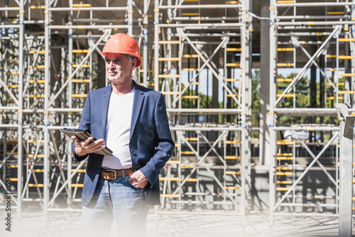 architect, tablet, standing, construction, site, copy space, technology, 1, people, industry, computer, communication, senior, adult, business, man, digital, german, outdoors, light, sunlight, hard, hat, helmet, working, architecture, occupation, job, scaffold, wireless, connection, casual attire, protective, workwear, clothing, building, owner, expertise, life events, thinking, contemplation, holding, caucasian, looking, engineering, engineer, male