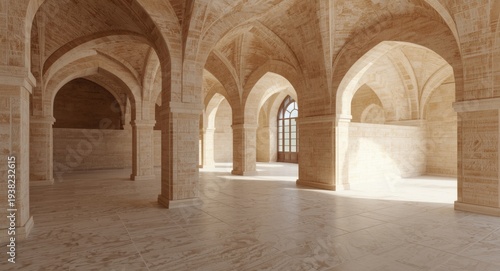 Architectural concept art of an interior space with 3D rendered arches