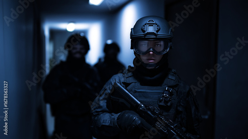 soldier, tactical, military, team, mission, combat, armed, operation, weapon, uniform, night, security, raid, action, swat, army, force, training, warfare, protection, elite, police, gun, patrol, danger, helmet, rifle, blurred, sharpened, covert, conflict, readiness, intervention, indoor, unit, tactic, urban, assault, squad, defense, emergency, gear, threat