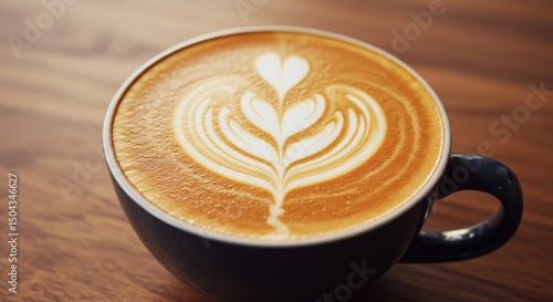 Aromatic Coffee Latte with Intricate Art - A delightful caffeinated beverage, showcasing beautiful latte art, symbolizing warmth, comfort, artistry, energy, and love