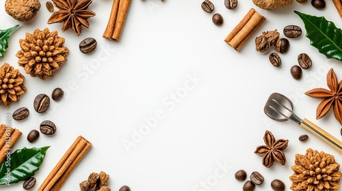 spice, herb, cinnamon, star anise, hot drink, nutmeg, clove, allspice, cocoa, vanilla, ginger, bay leaf, cocoa, pine cone, foliage, decoration, kitchen, cooking, baking, holiday, festive, warming, organic, natural, aroma, favor, ingredient, table, rustic, seasonal, farm, fresh, wholesome, essential, preparation