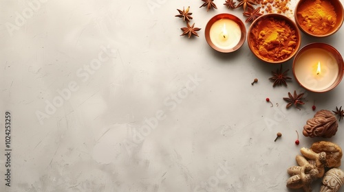 spice, aroma, cooking, baking, food, ingredient, seasoning, herb, star anise, turmeric, cinnamon, clove, candle, lighting, decoration, cosy, warm, autumn, winter, rustic, natural, organic, still life, copy space, background, texture, wooden, ceramic, bowl, table, topview, arrangement, fragrance, favor, cookery, culinary, healthy, homemade, hand-made, craft, design, creative, mood, atmosphere, relaxation, meditation