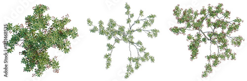 Aronia arbutifolia tree plan, top view, cutout, transparent background, isolate, Vibrant Green Vine with Red Berries - Detailed Botanical Illustration for Nature and Design