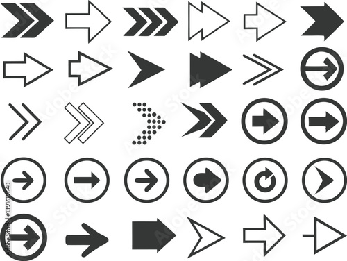 arrow, icon, vector, set, signs, arrow, buttons, symbol, isolated, click, up, down, white, app, application, art, black, curve, digital, direction, download, element, web, illustration, design, icon, cursor, next, cyberspace, play, forward, collection, pointer, logotype