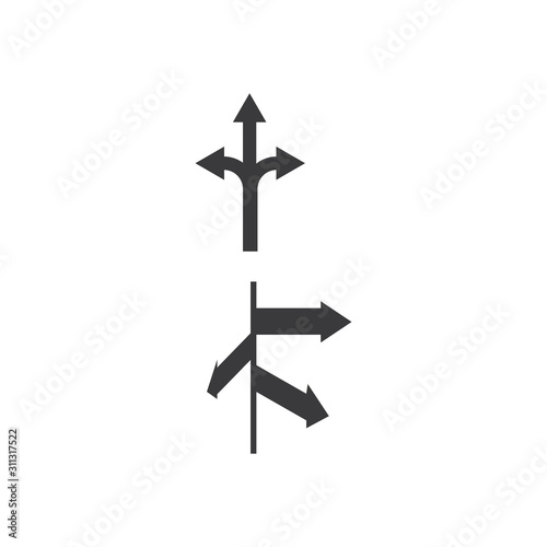 illustration, pointer, direction, vector, signs, icon, arrow, symbol, strategy, choice, progress, pathway, guidance, standing, way, abstract, forward, question, decision, business, street, point, uncertainty, turn, choose, concept, option, crossroad, success, background