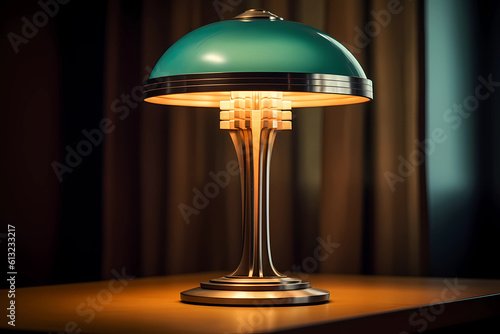 Art Deco Lamp - Originated in France - Lamp characterized by sleek lines, geometric shapes, and a sense of glamour from the Art Deco era (Generative AI)