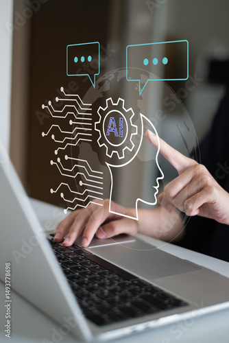 technology, communication, artificial intelligence, innovation, intelligence, service, cyberspace, message, robot, business, concept, datum, connection, support, artificial, assistant, computer, futuristic, horizontal, cyberspace, online, software, speech, color image, advice, chat, conversation, help, information, photo, tech, virtual, person, digital, wireless technology, laptop, marketing, smart, solution, ai, bot