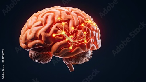 Artificial intelligence circuit and brain science concept. A futuristic brain illustration with glowing neural connections.