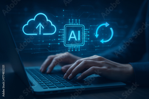 Artificial Intelligence Cloud Computing and Data Synchronization Concept