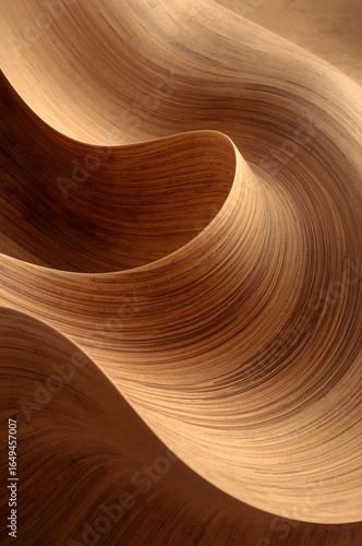 Artistic abstraction with smooth wavy lines reminiscent of wooden surfaces and natural shapes. Soft warm shades create harmony and a sense of natural aesthetics.