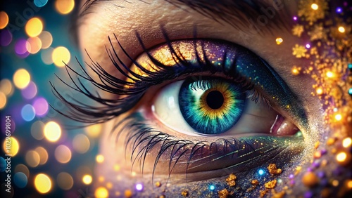 eye, closeup, bokeh, artistic, beauty, detail, iris, eyelash, portrait, dreamy, vibrant, colours, photo, macro, aesthetic, sharpened, soft, light, depth, vision, expression, emotion, creative, serene, delicate, nature, human eye, captivating, stunning, mesmerizing, texture, pattern, enchanting, colourful, blurred background, aglow, intriguing, eye makeup