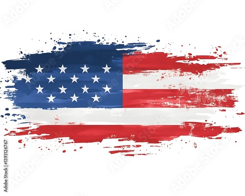 flag, star, stripes, blue, red, white, paint, brushstroke, art, grunge, abstract, texture, patriotic, symbol, design, nation, illustration, graphic, country, watercolor, artistic, freedom, emblem, colours, fragment, background, isolated, america, united, state, representation, brush, rough, faded, old, vintage, ink, stain, splatter, laundered, mark, decorative, detail, horizontal, banner, style, crafted, composition
